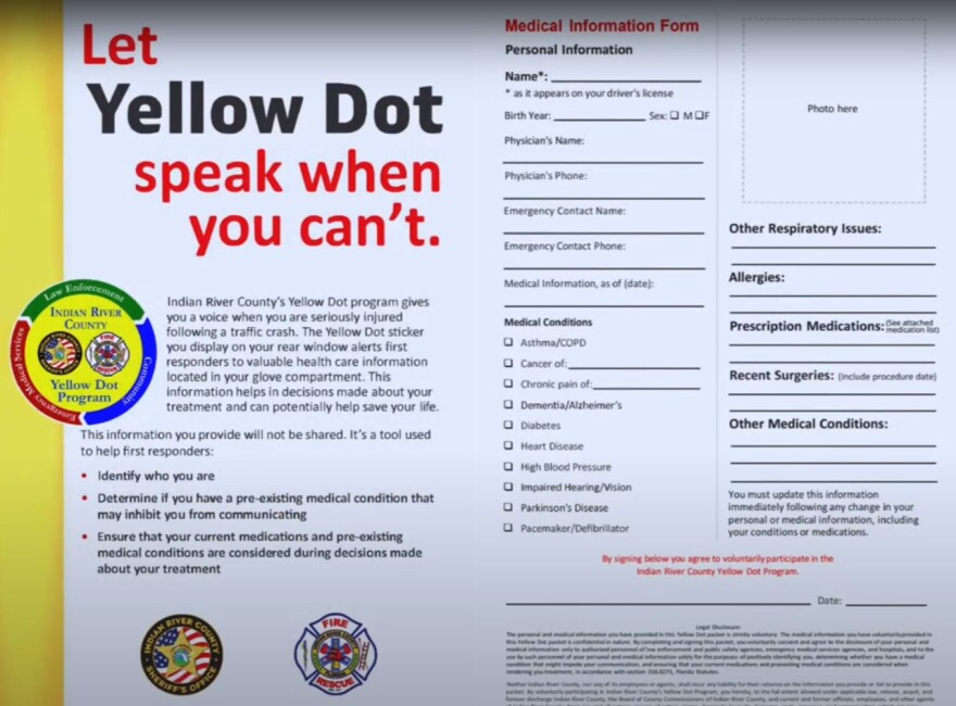 Indian River County - Tuesday June 13, 2023: The Indian River County Sheriff’s Office has partnered with IRC Fire & Rescue to launch the 'Indian River County Yellow Dot Program'.