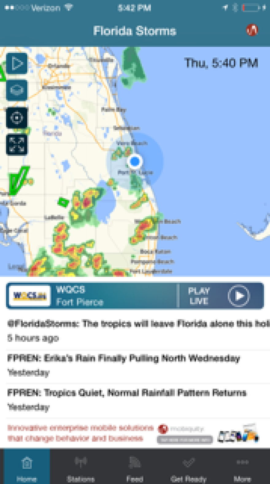 WQCS News The Florida Storms App Lets You Track Weather Conditions WQCS | By Jill Roberts Published September 3, 2015 at 5:46 PM EDT Facebook Twitter LinkedIn Email Listen • 3:51 The Florida Storms app is available now to iPhone users, an android version is expected by the middle of the month. You can track the weather and listen to WQCS!