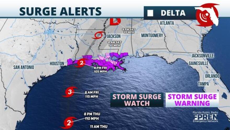 Delta continues its march toward a record-setting 10th U.S. landfall of a named storm in one season. It is expected to bring life-threatening surge, heavy rain, strong winds, and high surf to the Gulf coast on Friday.