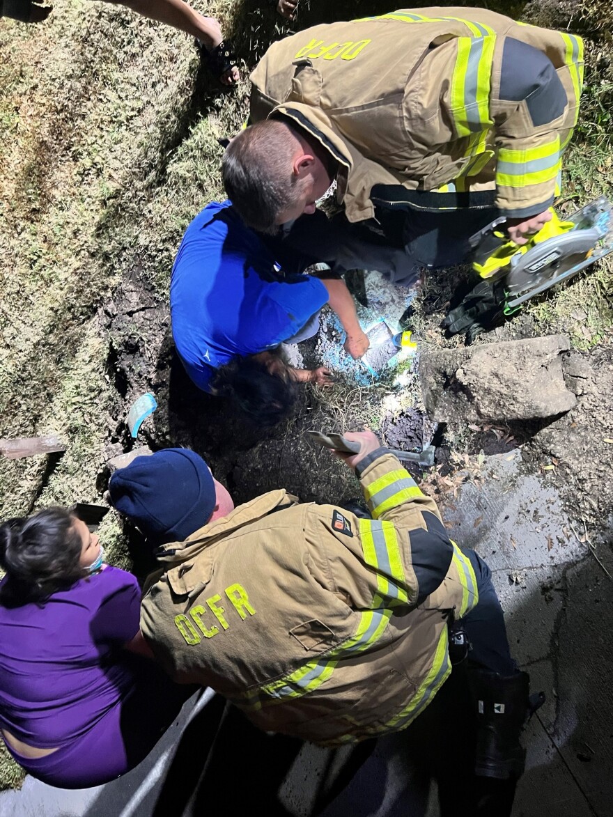 Okeechobee County - Wednesday January 18, 2023: Okeechobee County Fire Rescue responded to a call Monday evening about a dog stuck in a culvert.