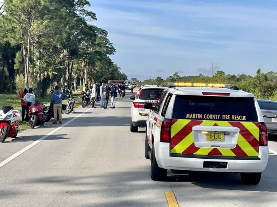 It happened in the 11000 block of SW Kanner Highway in unincorporated Martin County during a Thanksgiving Day motorcycle group ride, according to Martin County Fire Rescue.