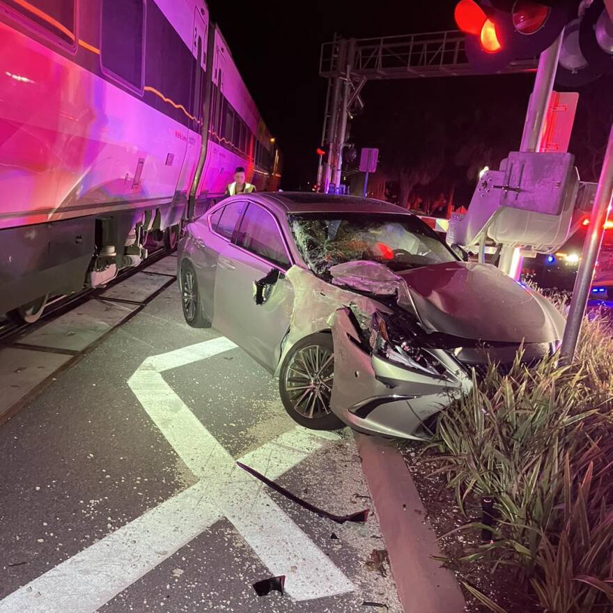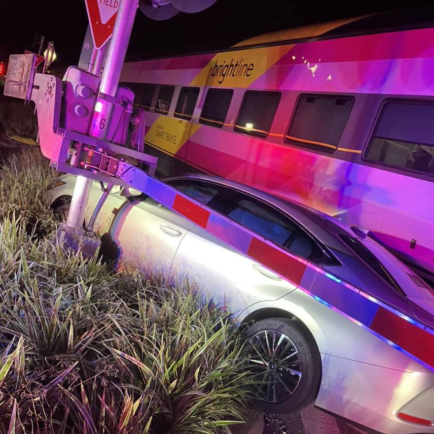 Stuart - Wednesday January 3, 2024: No one was injured when a Brightline train smacked into this vehicle last month at the Confusion Corner crossing in Stuart.