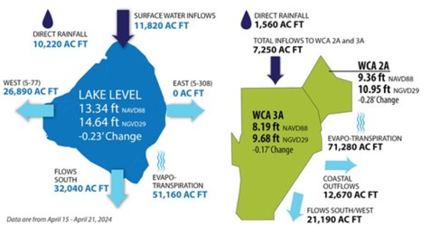 South Florida - Wednesday April 24, 2024: Here are the latest water levels in key south Florida water bodies from data collected between April 15 through April 21.