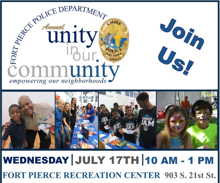 Fort Pierce - Friday July 12, 2024: The City of Fort Pierce Police Department will host its 6th annual 'Unity in Our Community' event this coming Wednesday, July 17.